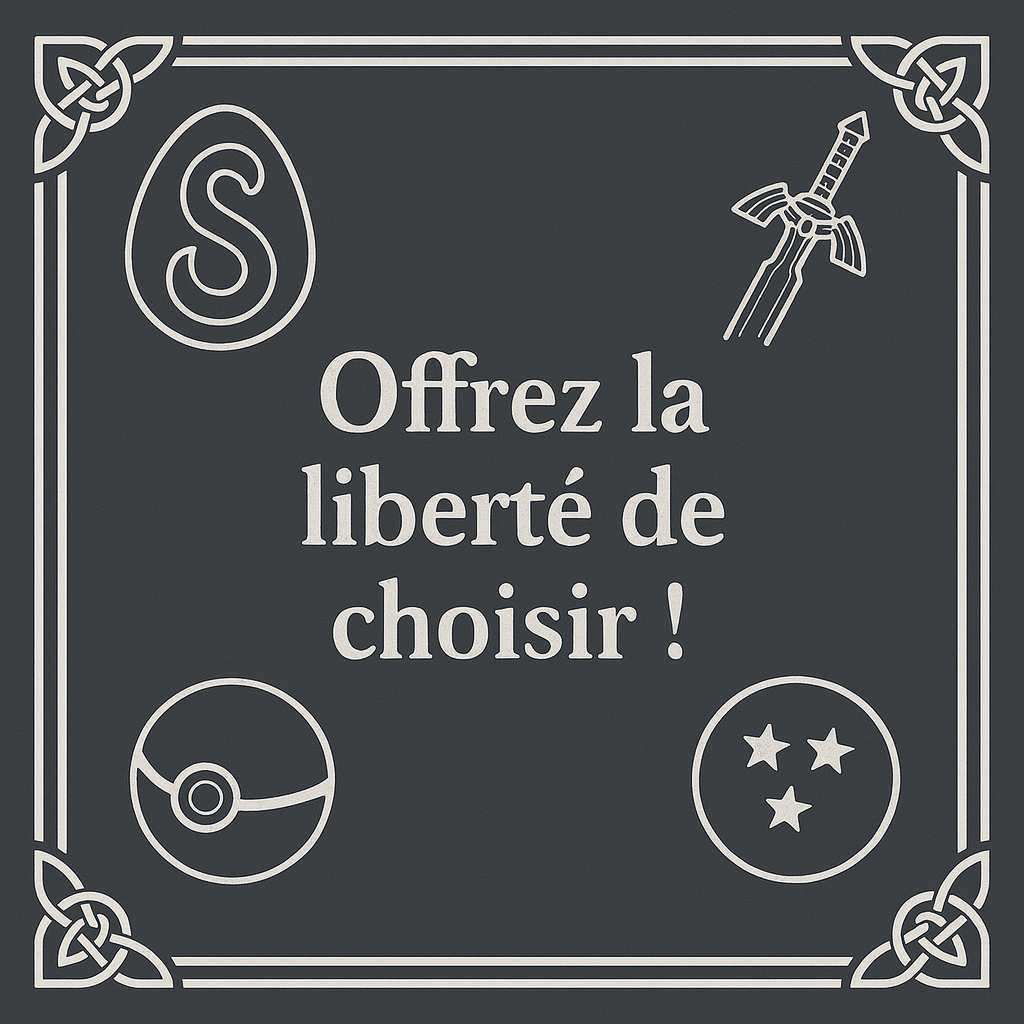 Avec une carte cadeau, laissez vos proches sélectionner la création qui leur fait le plus envie : répliques artisanales inspirées de l’univers Dofus, mais aussi d’autres mondes fantastiques, pièces uniques et créations originales.