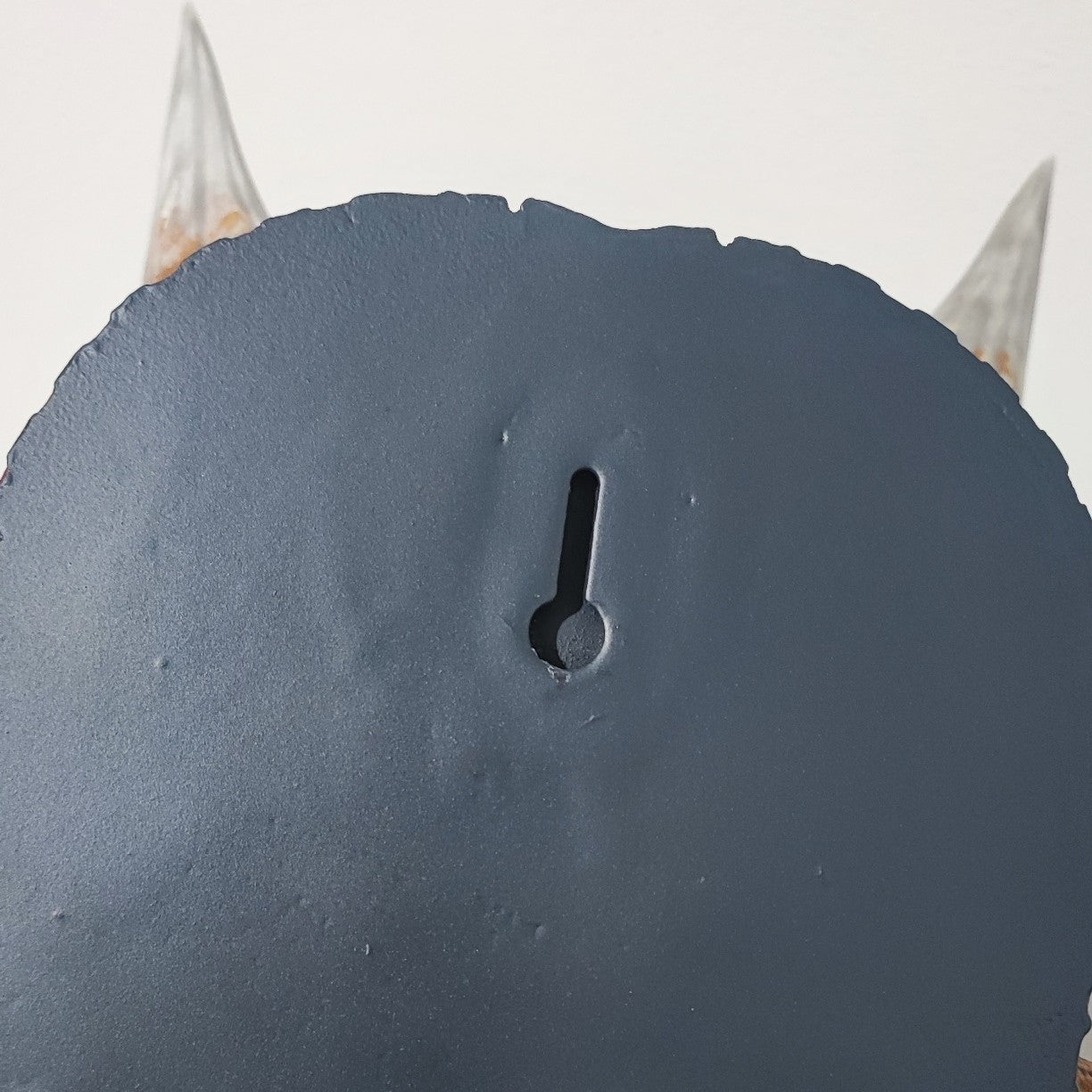 Le masque est conçu pour être accroché au mur à l’aide d’une petite vis, assurant une fixation stable et bien plaquée contre le mur. (Du double face peut être envisagé EN PLUS selon le support, la fixation reste fine).